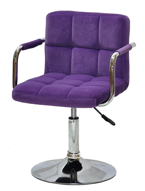 Крісло Arno Arm CH — Base ліловий велюр на хромованій базі з підлокітниками, з регулюванням висоти сидіння 40-54 см