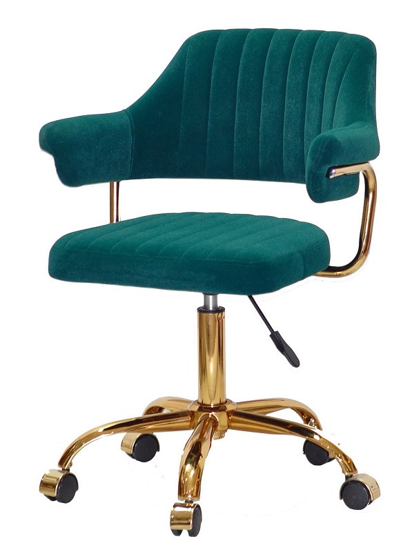 Крісло Jeff GD-Office велюр зелений 1003 на золотій хрестовині з колесами, з регульованою висотою