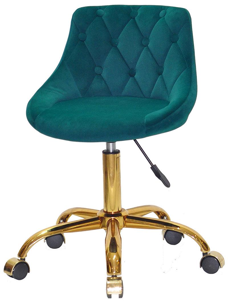 Стілець Foro Button GD-Office зелений 1003 велюр на золотій хрестовині з колесами, з регулюванням висоти