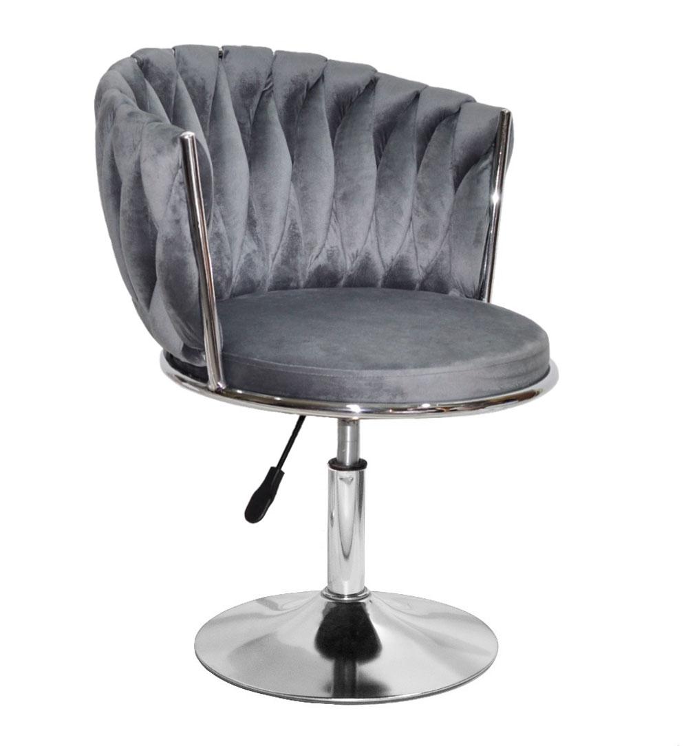 Сірий велюровий стілець майстра Mila CH-Base на круглій хромованій нозі-опорі, поворотний із регулюванням висоти сидіння